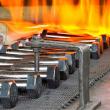 O Tratamento em forno contínuo é muito procurado para realizar serviços em aço. O aço responde bem ao aquecimento e pode ter sua mecânica alterada para ficar mais dúctil, suportando tensões maiores ou mais rijas, se essa for a necessidade apresentada em projeto.